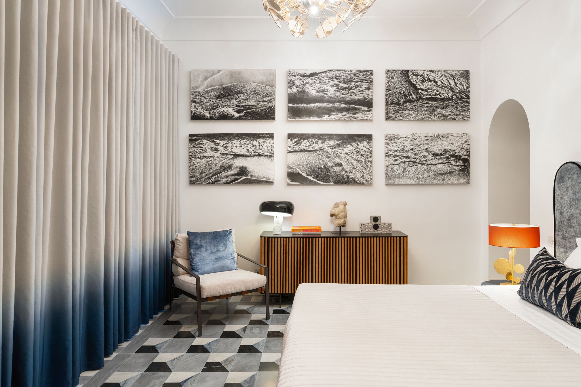 Bedroom 1: The Wave Room embodies the epitome of luxury and relaxation with every detail reflecting refined