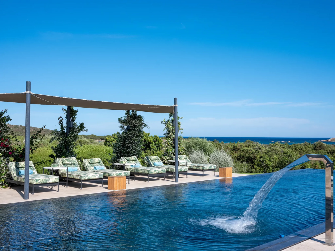 Villa Malena is a modern structure built in 1976 by a famous Italian architect and recently renovated. It is located in a privileged position in Capo Coda Cavallo, in a small bay that forms a well-protected natural harbor even for large yachts. The villa enjoys exceptionally views while a small path, 50 meters long, leads to a natural cove, where you can relax on a small private sandy beach furnished with sun lounge chairs and umbrellas.